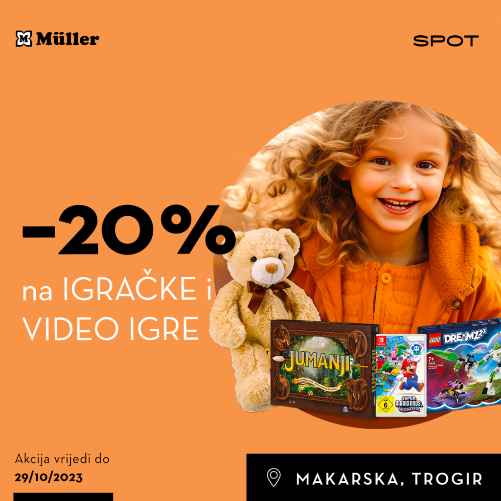 Vrijeme je da razveselimo naše najmlađe! U Mulleru vas očekuje 20% popusta na igračke i video igre pri kupnji iznad 15 €/ 113,02 kn.