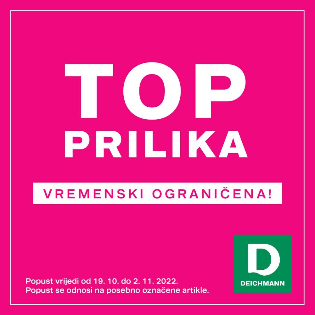 Top prilika u Deichmannu donosi 30% popusta na posebno označene modele i traje samo do 2.11.2022. Dobro nam došli!